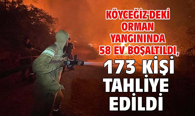 MUĞLA'nın Köyceğiz ilçesinde çıkan orman yangınında alevlere müdahale havadan ve karadan sürerken tedbir amacıyla 58 ev ev boşaltıldı, 173 kişi güvenli bölgelere tahliye edildi.