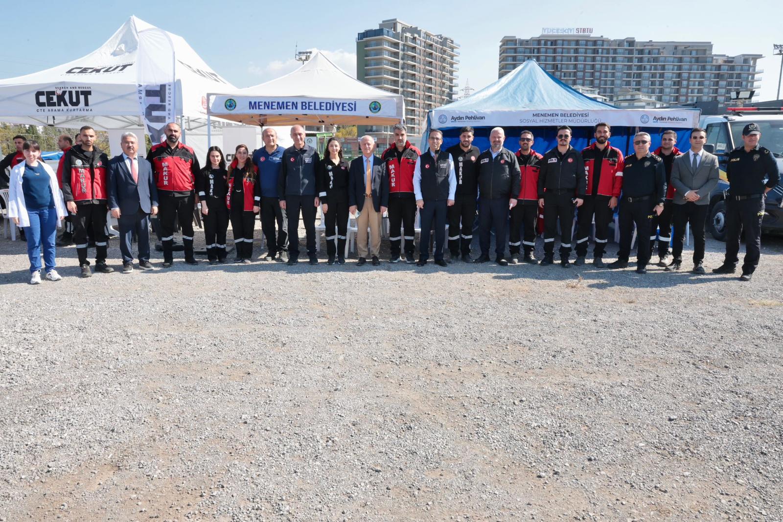 Menemen'de dev bir tatbikat gerçekleştirilmesinin önemine değinen Menemen Belediye Başkanı Aydın Pehlivan, "Deprem kuşağında bir ülke ve kent olarak her an için depremlere hazırlıklı olmak zorundayız. Bu noktada yerel yönetim olarak bizlere de çok önemli görevler düşüyor. Bu görevler içinde öncelikli noktalarımızın başında, afetlere karşı bir ekibimizin olması geliyor. Bu amaçla göreve geldikten kısa bir süre sonra ilk olarak MAKUR'u kurduk ve ekibimiz, Kahramanmaraş merkezli depremden, İzmir'de çıkan orman yangınlarına kadar birçok noktada kahramanca ve özveriyle görev yaptı. Daha sonra bu konudaki kurumsal ve profesyonel yaklaşımı bir adım daha öteye taşıyarak belediyemiz bünyesinde Afet İşleri ve Risk Yönetimi Müdürlüğümüzü kurduk. Olası bir afette bir saniyenin bile öneminin farkında olarak, ekibimizi her geçen gün daha da güçlendirmeye devam edeceğiz." dedi.