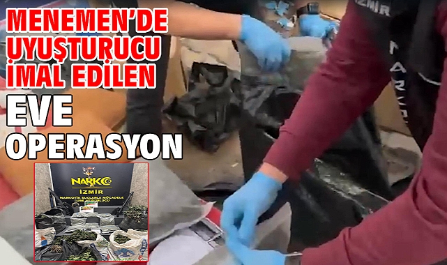 İzmir'in Menemen ilçesinde, operasyon yapılan evde uyuşturucular ve kenevir yetiştirme düzenekleri ele geçirildi, gözaltına alınan A.B. ve T.F. tutuklandı.