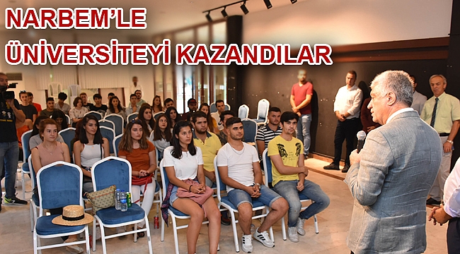 130 ÖĞRENCİ ÜNİVERSİTEYİ KAZANDI Narlıdere’de yaşayan öğrenciler için ücretsiz kurs imkanı sağlayan ve dar gelirli ailelerin çocuklarını geleceğe hazırlayan NARBEM, son yapılan üniversiteye giriş sınavlarında da fark yarattı. Üniversiteye hazırlık kursu alan 200 öğrenciden 130’u hayallerini gerçeğe dönüştürdü ve istedikleri fakülteleri kazanma imkanı buldu. NARBEM’li öğrenciler, Dokuz Eylül, Ege, Celal Bayar, Adnan Menderes gibi önde gelen üniversitelerini kazanarak akademik yaşama ilk adımı attı. Öğrenciler, Belediye Başkanı Ali Engin ile buluşarak, başarılarını kutladı.