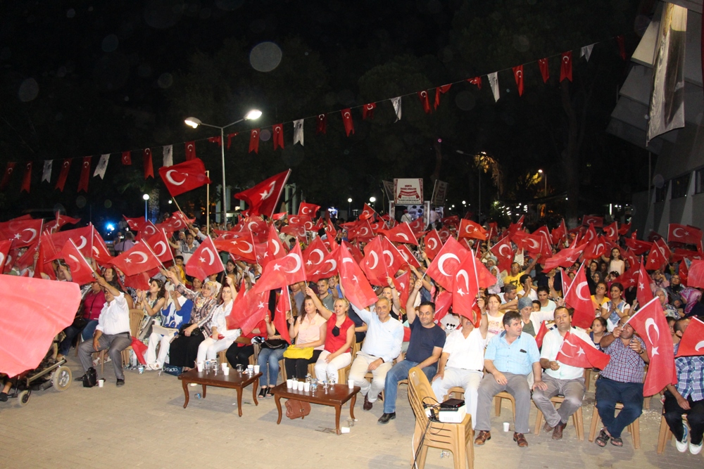 Tüm Türkiye’de olduğu gibi Ödemiş’te de 15 Temmuz Cuma akşamı yaşanan darbe girişimine karşı koymak için ülke sevdaları meydanlara çıkıyor. Ödemiş Belediyesi tarafından organize edilen demokrasi nöbetinde her gece çok sayıda demokrasi sevdalıları biraraya gelerek ellerinde bayrak, sloganlar atarak demokrasi nöbetini sürdürüyor. Ödemiş Belediye Başkanı A.Mahmut Badem, Ulus Meydanı Saracoğlu Stadyumu önünde organize edilen demokrasi nöbetinde her gece vatandaşlarla bir arada oluyor. 7’den 77’ye, her yaş kesiminden demokrasi ve ülke sevdalıları, darbeye karşı koyuyor. Kahramanlık şiirlerinin okunduğu ve çeşitli gösterilerin yer aldığı gecede Başkan Mahmut Badem konuşmalar yapıyor.
