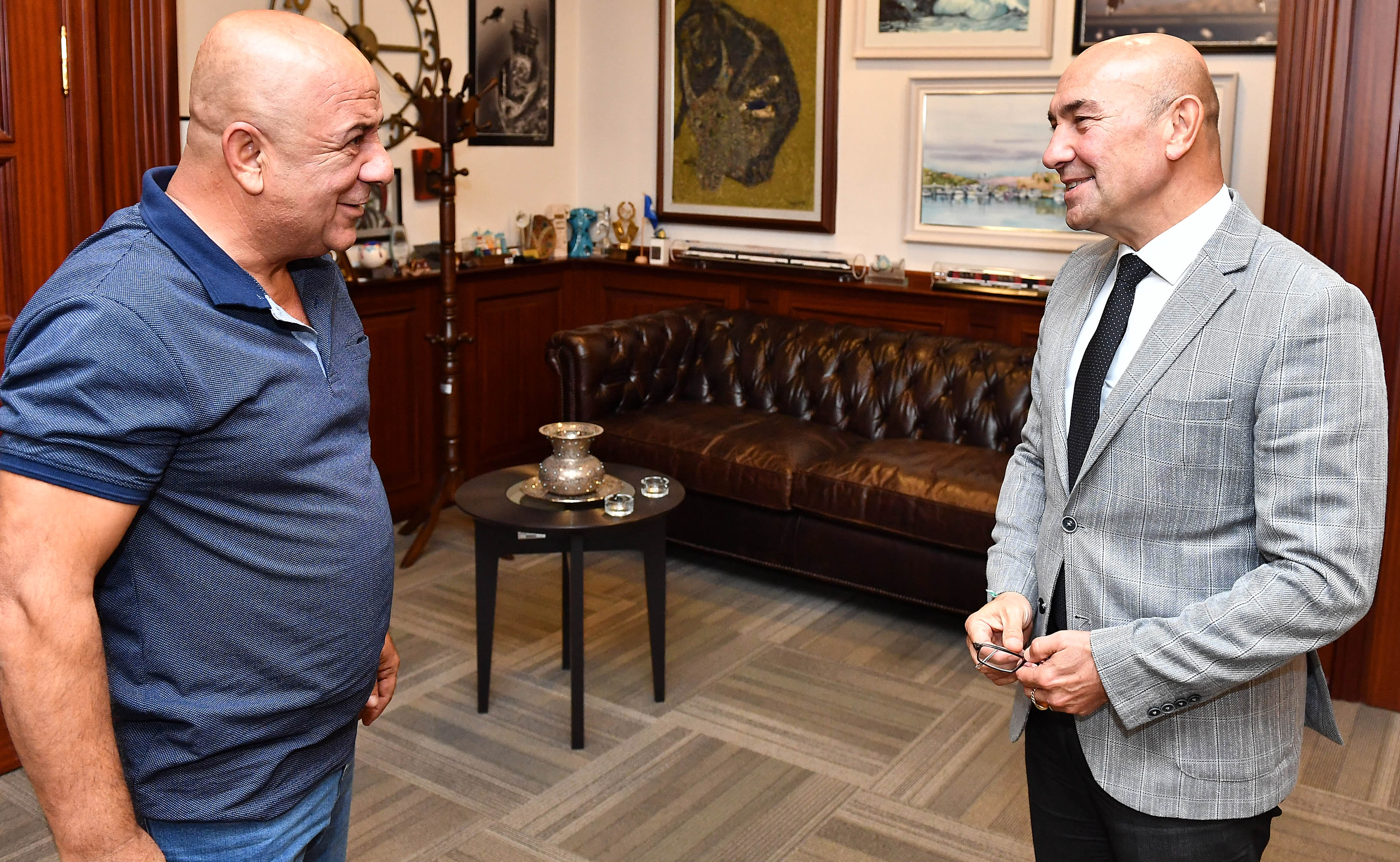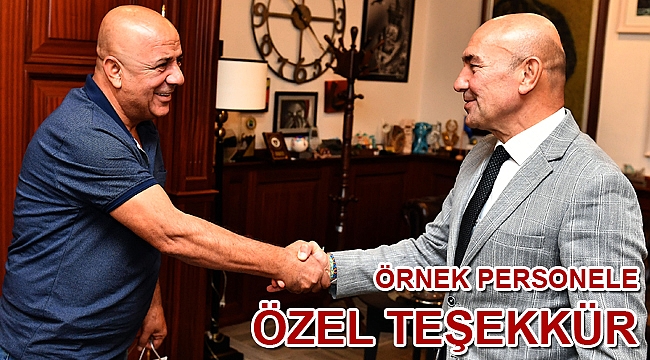 İZSU Genel Müdürlüğü Kanalizasyon Dairesi Başkanlığı Güney Bölgesi Kanal Bakım Şube Müdürlüğü Şefi Zeki Aytulun'u makamına davet eden Başkan Soyer, "Her gittiğim yerde isminizi duyuyorum, bölgenizdeki tüm muhtarlar sizden çok memnun. Böylesine özverili ve işini hizmet aşkıyla yapan insanlarla çalışmak benim için gurur verici" dedi.