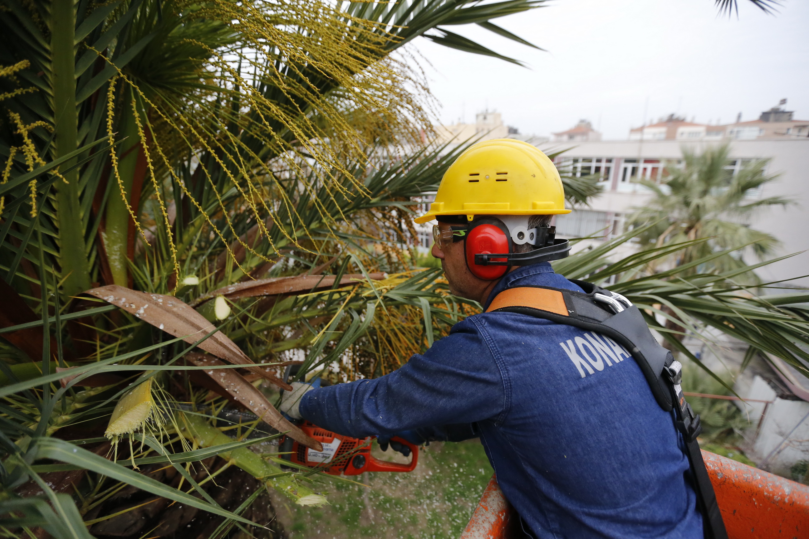İzmir’in merkez ilçesi Konak’ta park ve yeşil alanlara yönelik yürütülen bakım çalışmaları aralıksız devam ediyor. Kış aylarında kuruyan veya fazla uzayan ağaç dalları için budama çalışmaları yapılırken, mevsimine uygun çiçeklerin de dikimi yapılıyor. 16 metre uzayabilen hidrolik platformlu araç sayesinde çınar ve palmiye gibi ağaç türlerinin kurumuş ya da zarar görmüş dalları ekiplerce kolay bir şekilde budanıyor. Yürütülen budamalar sayesinde ağaçların gelişimleri kuvvetlenirken, çiçeklenme miktarı da artıyor. Ağaçların cinsine göre gerçekleştirilen budama çalışmaları sayesinde parkların görünümü daha estetik bir hale dönüşüyor.