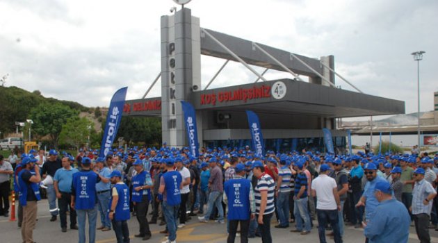 Bursa'da, bir otomotiv fabrikasında başlayan ve Kocaeli'ne sıçrayan Toplu İş Sözleşmesi anlaşmazlığı sonrası başlayan iş bırakma eylemi İzmir'in Aliağa ilçesindeki Petkim'de de başladı.İşveren yetkilileri ile Petrol-İş Aliağa Şubesi temsilcileri arasında yapılan ancak uzlaşı sağlanamayan Toplu İş Sözleşmesi görüşmeleri tıkanınca Petrol-İş üyesi Petkim işçileri, kendilerini fabrikaya kapatarak iş bırakma eylemi başlattı. Yaklaşık bin 800 kişinin çalıştığı Petkim'de eyleme katılan işçilerin sayısı bine yakın. Edinilen bilgiye göre, fabrikalar çalışmaya devam ediyor ancak satış durduruldu. Ayrıca, fabrika giriş kapısında emniyet güçleri tarafından bir adet Toplumsal Olaylara Müdahale Aracı (TOMA) bekletiliyor.Toplu iş sözleşmesi taleplerinin dile getirilmesinin yanı sıra asıl anlaşmazlığın, 1997 yılından 2006 yılına kadar uygulandığı halde işveren tarafından 2006 yılında bozulan ücret sistemindeki farkın kapatılması olduğunu dile getiren Petrol-İş Sendikası Aliağa Şube Başkanı Ahmet Oktay, "2011 sözleşmemizde getirdiğimiz noktayı bundan sonraki süreçte kapatmasıdır. Ancak, yapılan son görüşmelerde bu konu, iki ayrı skalaya iki ayrı ücret olarak anlaşılmış, fakat işverenin teklif ettiği rakam istediğimizin çok altında kalmıştır. 26.05.2015 tarihinde yapılan toplu iş sözleşme görüşmesinde; işveren ikili skala zammını geri çekmiş ve % 3.25 ile % 3.75 olarak getirdiği ücret zammını ilk altı ay için tüm çalışanlara olmak üzere yüzde 5 olarak teklif etmiştir" dedi. Oktay, bu gelişmeler neticesinde protesto eylemleri başlattıklarını ifade etti. Önceki gece mesaileri biten işçiler, evlerine gitmeyerek fabrika önünde bekleme kararı aldı. Sonraki vardiya çıkışlarında da diğer işçilerden destek alan gruba hitaben açıklama yapan Petrol-İş AliağaŞubesi Başkanı Ahmet Oktay, toplu iş sözleşmesi ile ilgili işveren yetkililerinin verdiği sözleri tutmadığını dile getiren Oktay, Toplu İş Sözleşmesini barışçıl bir şekilde çözme çabalarına karşın yetkililerin kendilerini anlamak istemediğini ifade etti. Oktay'ın açıklamaları esnasında yüzlerce işçi, bir ağızdan slogan atarak destek verdi. Oktay, uzlaşma sağlanana kadar direneceklerini ve eylemlerini sürdüreceklerini açıkladı.