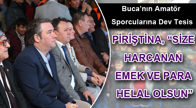Sağanak yağmura rağmen bu coşkulu günü yaşamak için temel atma törenine gelen binlerce minik sporcu ve ailelerine seslenen Buca Belediye Başkanı Levent Piriştina, “Bu tesis Buca’ya, sporcuya ve Buca’nın spor için hiçbir fedakarlıktan kaçmayan ailelerine yakışır bir tesis olacak. Amatör sporun kalbi burada atacak. Size harcanan para, size harcanan emek helal olsun” dedi. Törende bir konuya daha değinen Başkan Piriştina taşerondan kadroya geçiş uygulamasında birçok ailenin zarar gördüğünü belirterek “ Ekmekle oynamayın” sözleriyle yetkililere çağrıda bulundu.