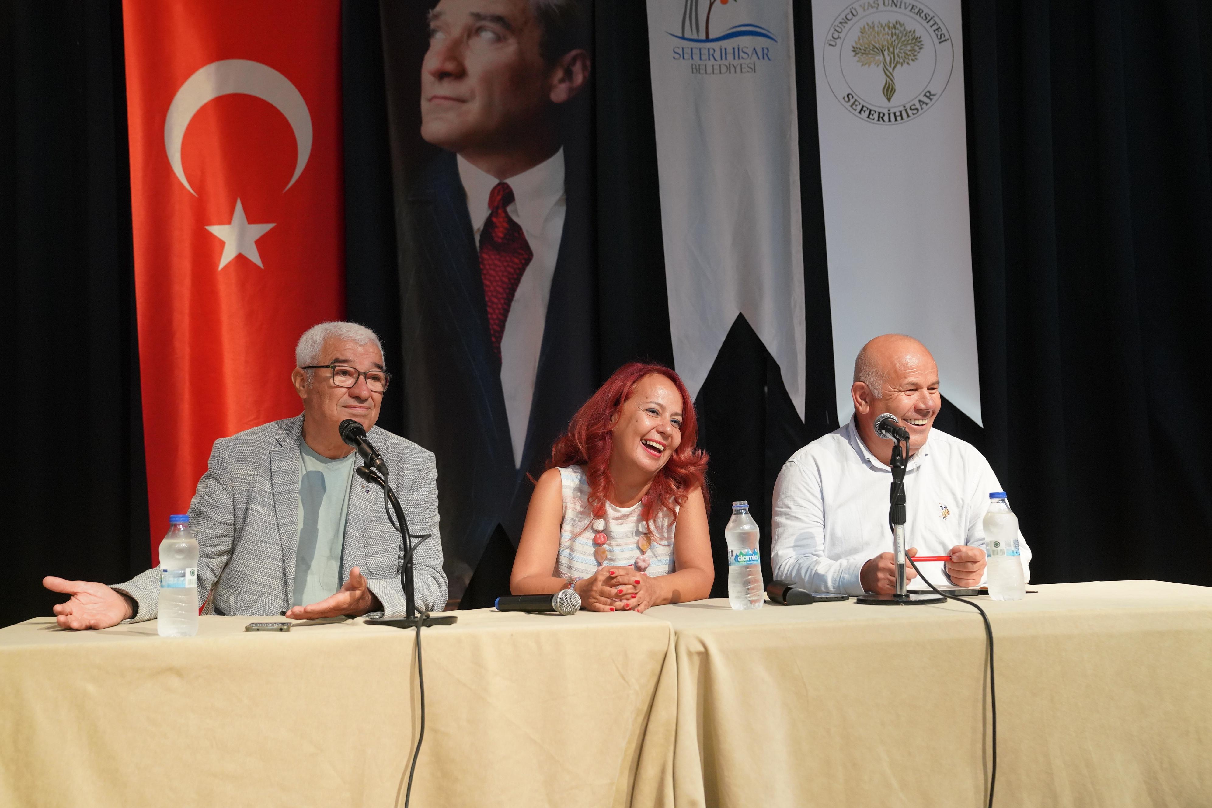 Panele; Ege Üniversitesi Tıp Fakültesi Geriatri Bilim Dalı Başkanı Prof. Dr. Sevnaz Şahin, Ege Geriatri Derneği Başkanı Psikolog Mevlüt Ülgen, Ege Üçüncü Yaş Üniversitesi Öğrenci Temsilcisi Osman Nuri Tartılacı ve Seferiçınar Yaş Alma Merkezi üyeleri katıldı.