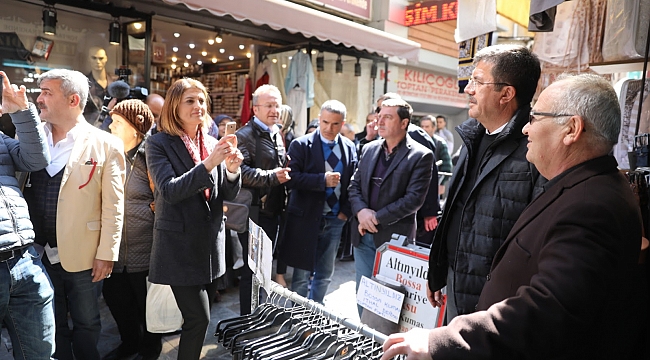 Zeybekci, Hisarönü, Kızlarağası ve Şadırvanaltı’nda eşi Ayşen Zeybekci ve Konak Belediye Başkan Adayı Melek Eroğlu’yla birlikte esnafı ziyaret ederek, hayırlı iş, bol kazanç temennisinde bulundu. Tarihi çarşıya girişinden itibaren esnafın ve vatandaşların ilgi odağı haline gelen Zeybekci, fotoğraf çektirmek isteyenleri de kırmadı.