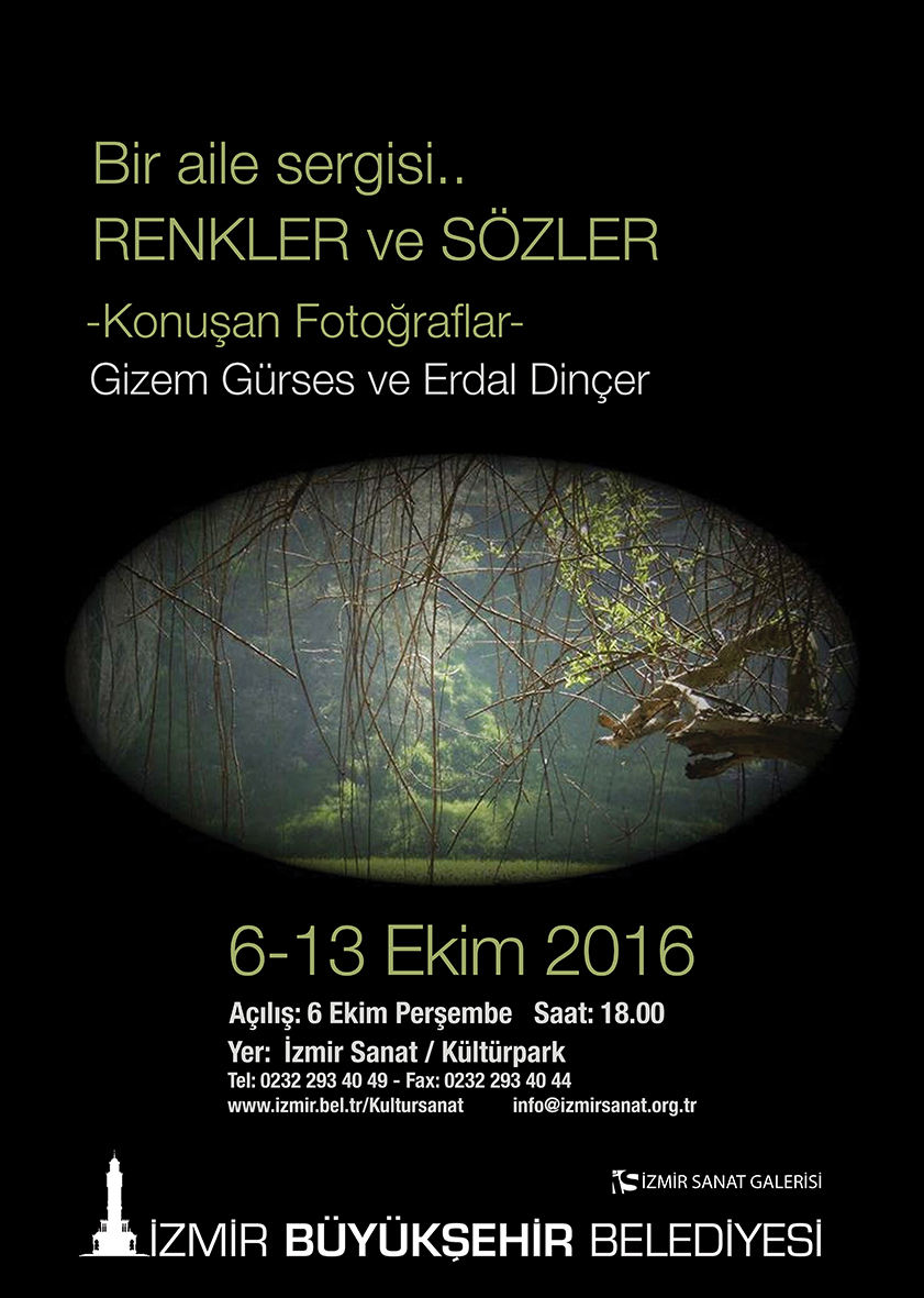 6-13 Ekim 2016 tarihlerinde ise Gizem Gürses ile Erdal Dinçer’in fotoğraflarından oluşan ‘Bir Aile Sergisi… Renkler ve Sözler, Konuşan Fotoğraflar’ başlıklı sergi sanat tutkunlarının beğenisine sunulacak. Serginin açılışı, Kültürpark İzmir Sanat’ta 6 Ekim’de saat 18.00’de.