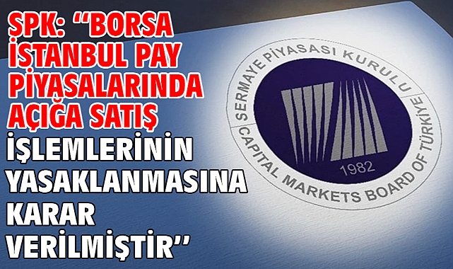SPK: ''Borsa İstanbul pay piyasalarında açığa satış işlemlerinin yasaklanmasına karar verilmiştir''