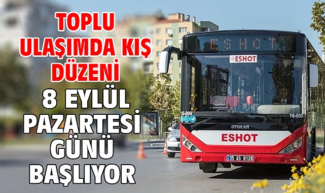 Yeni eğitim öğretim yılının başlayacak olması nedeniyle otobüs, metro ve tramvay hatlarında sefer sıklıkları artırılacak. İZDENİZ gemileri, mevcut tarifeleriyle çalışmaya devam edecek. Kış hazırlıkları kapsamında otobüsler bakımdan geçirildi, temizlik çalışmaları tamamlandı ve şoför kadrosu güçlendirildi.Yeni eğitim öğretim dönemi 8 Eylül Pazartesi günü başlıyor. İzmir Büyükşehir Belediyesi’ne bağlı toplu ulaşım kurum ve kuruluşları, başta okul servisleri olmak üzere kentte araç ve yaya trafiğinin artacak olması nedeniyle kış tarifesine geçiş yapacak.