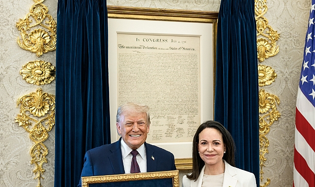 ABD Başkanı Donald Trump, Venezuelalı muhalif lider Maria Corina Machado ile Beyaz Saray'da bir araya geldi. Machado, kendisine verilen Nobel Barış Ödülü'nü Trump'a takdim etti.