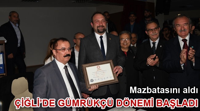 Çiğli Belediyesi’nin yeni seçilen Başkanı Utku Gümrükçü mazbatasını İsmail Rahmi Karadavut İlkokulu’nda oluşturulan Çiğli İlçe Seçim Kurulundan aldı. Çiğli’deki 444 sandıkta kullanılan oyların yüzde 62,08’si olan 75 bin 697 oyu alarak belediye Başkanı seçilen Başkan Utku Gümrükçü ve seçilen meclis üyeleri mazbatalarını Çiğli İlçe Seçim Kurulu Başkanı Bayram Yılmaz’dan teslim aldı.