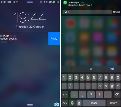 Whatsapp'a gelen hızlı mesaj özelliğini aslında iOS 8 ile birlikte pek çok uygulama kullanıyordu. Hızlı cevap özelliği sayesinde uygulamayı açmadan kilit ekranında ve bildirim çubuğundan cevap yazılabiliyor.