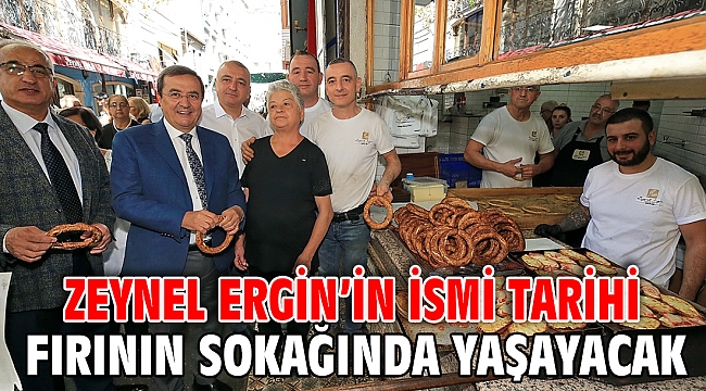 İzmir’in simge mekanlarından Zeynel Ergin Gevrek Fırınının sahibi merhum Zeynel Ergin’in ismi 60 yıl boyunca gevrek ürettiği fırının sokağına verildi. Konak Belediye Meclisi’nde oybirliğiyle alınan kararla 1466 Sokak’a Zeynel Ergin’in fotoğrafının da bulunduğu isim tabelasının yerleştirildiği törene Konak Belediye Başkanı Abdül Batur, CHP Konak İlçe Başkanı Akın Küçükoğullarından, Alsancak Mahalle Muhtarı Hicran Akuzun ve bölge muhtarları, Zeynel Ergin’in eşi Müzeyyen Ergin, oğulları Özer, Ömer, Öner Ergin ve eşleri, İzmir Pide Gevrek ve Benzerleri Esnaf Odası Başkanı Şükrü Erişen, Konak Belediyesi Meclis Üyeleri, sivil toplum kuruluşları temsilcileri, Alsancak sakinleri ve fırının müdavim müşterileri katıldı. Duygusal anların yaşandığı törende, geçtiğimiz yıl yaşama veda eden Zeynel Ergin de bir kez daha anıldı.