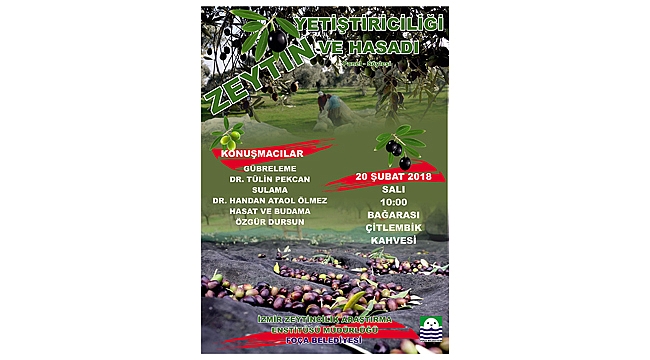 Foça Belediyesi ve İzmir Zeytincilik Araştırma Enstitüsü Müdürlüğü işbirliğiyle; ‘‘Zeytin Yetiştiriciliği ve Hasadı’’ konulu panel ve söyleşi düzenlenmiştir.